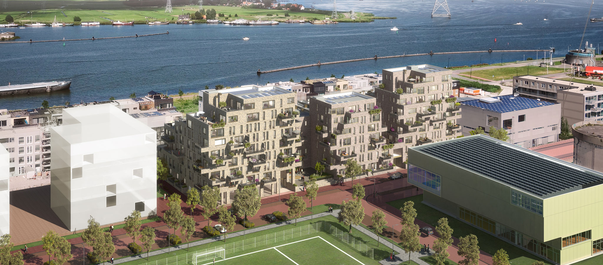De nieuwbouw in Terrazza bestaat 122 appartementen uit verdeeld over 3 woonblokken. Wat opvalt is de eenduidige uitstraling, maar mét een grote afwisseling in lagen en hoogten. Denk aan verspringende verdiepingen en balkons die eigenwijs uitsteken. Ook de appartementen bieden de nodige variatie, zowel in woonoppervlakte - van 50m2 tot maar liefst 180m2 - als in buitenruimte: van Frans balkon tot een flink terras van zo’n 100m2.